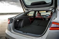 German brands need to understand that you don't create a 'Gran Turismo' simply by switching to a five-door body shape from an existing saloon and adding a rear spoiler. Designer Gregory Guillaume seems to have appreciated that better than his counterparts at Audi and BMW and, as a result, the Stinger's longer, lower and quite differently proportioned from anything else in the segment. Mounted between complex dark chrome headlamp units that feature LED beams on the top V6 model, there's a different interpretation of Kia's 'Tiger Nose' grille, with jewel-studded metallic effect finishing. Primary cooling though, is dealt with by the large lower grille and air intake, which is flanked by scoops that channel cooling air to the brakes. Step round to the rear of the Stinger and you're also left in no doubt about the car's sporting intent, particularly on the top 3.3-litre V6 GT S version, which has twin exhausts poking potently out of each side of the aggressively-shaped rear diffuser. Inside, you sit low on leather stitched figure-hugging sports seats, view a broad faux leather soft-touch-trimmed centre console and grasp a flat-bottomed three-spoke D-shaped wheel over which you can also view a head-up display. The 8-inch centre-dash touchscreen is one of the elements borrowed from cheaper Kia models, but it's been well integrated. There are definite hints of Porsche and Mercedes here - the stubby auto gear lever, the 'jet turbine'-style three chromed central round vents - but the cabin's much more than some kind of derivative Teutonic 'homage'. It has its own sense of style and quality too, with cool metal surfaces, stitched leather trim panels and beautifully damped switchgear. What's on offer in the rear can't match the palatial standards of a rival Volkswagen Arteon, but it certainly out-classes competitors from Audi and BMW and if you take a seat in a rival Jaguar XE after trying one of these, you'll feel like you're in a supermini. Out back, if you avoid entry-level trim, you get a powered tailgate and once it raises, a shallow but quite spacious-looking 406-litre cargo area is revealed.