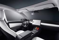 A 'Performance'-spec Model 3 is perhaps primarily recognisable by its lowered suspension and larger 21-inch 'Uberturbine' wheels, through the spokes of which you glimpse the red calipers of the uprated 'Performance' braking system. At the back, a neat carbonfibre rear spoiler has been added. Otherwise, there are no visual differences between this variant and an ordinary Model Y. Inside, the 'Performance'-spec upgrade is equally subtle, limited to a set of aluminium alloy pedals; otherwise, it's just as in an ordinary Model Y. Which means it's more minimalist than a Scandinavian loft. Well, in terms of button clutter anyway. There's nothing minimalist about this enormous 15-inch central touchscreen, on to which virtually all the comfort, infotainment and driving features you'll need have been located, including those you'd normally find in a conventional instrument cluster - here missing too. Beyond this, operating control provision has been kept to the absolute minimum. Don't bother looking for a gearstick, a starter button, a handbrake switch or physical ventilation controls; even the vents themselves are pretty hidden. Tesla also thought about getting rid of steering wheel stalks (as it subsequently did on the updated Model 3 and its larger cars), but they were reluctantly retained here, the left one for indicators and the right for gear selection. Otherwise, you're limited to a couple of unmarked scroll wheels on the steering wheel spokes. Getting in and out of the rear via the pillarless doors is easier than in a comparable Model 3 because of the taller body. Get inside at the back and the first thing you might notice is the completely flat floor - the usual transmission tunnel's not needed of course because there's no mechanical transmission. Even better, there's much more room than is usually provided for a centre-seated passenger to slide his or her shoes forward, beneath the jutting console with its twin vents. True, you'll rarely need the central pew to be occupied, but the space provided for it adds to the airy feel already created by the rear quarterlights and, primarily, by the huge standard panoramic glass roof. Out back, there's a decently-sized 854-litre boot, extendable to 2,100-litres in size if you fold the rear seats. You also get 117-litres of extra space under the bonnet.
