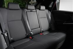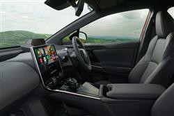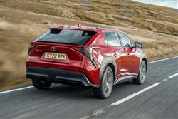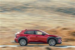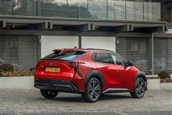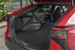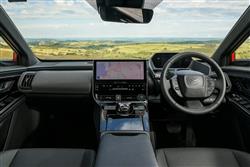 You sense that Toyota was undecided whether it's first proper electric vehicle should look like an EV or an SUV. Which is why we got a design here that blended a bit of both, hardly altered at all from the concept Toyota first showed at the Los Angeles Motor Show in 2021, apparently based around the theme of 'Hi-Tech and Emotion'. At least it's different. And certainly different from Toyota's usual SUV contender of this size, the RAV4. The 4.69-metres-long silhouette's more angular too, with pronounced upper creases on both doors and a lower tick-shaped swage line that flows up into the rear wheel arch. The frontal appearance is characterised by a brand-defining 'hammerhead' shape, with beady signature slim LED headlight 'eyes' and an emphasis on the front corners that's supposed to communicate the car's strong stance. At the rear, the design focus is again on emphasising the corners. The split roof spoiler that's standard above base trim is interesting and its aerodynamic properties are supposed to make unnecessary a rear wiper, so unfortunately Toyota didn't fit one. Inside, it's all quite different, as you'd hope with a car designed from a clean sheet of paper. Whether the bZ4X offers as luxurious a cabin as ought to grace an aspirational upper mid-sized EV is another question. Charismatic furnishing and opulent panelling isn't everything of course and there's no doubt that back in 2021 this was the most sophisticated front-of-cabin design the company had ever offered - and in some ways the most unusual. The absence of a glovebox is supposed to create an airier feeling, which unfortunately you don't really notice because you're hemmed in by the high-set centre console, below which room created by the absence of a transmission tunnel frees up open lower shallow storage space you'll hardly ever use. The other thing you'll notice pretty soon after getting comfortable is the unusual wheel and instrument binnacle arrangement that sees you staring through the spokes of a smaller-than-usual steering wheel at a seven-inch digital combimeter instrument screen supported by unusual grey slatted struts. Anything else you'll need to know will of course be found on the central infotainment monitor, which will be of the 12.3-inch 'Toyota Smart Connect' kind provided you've avoided the base 'Pure' level of trim that hardly anyone will want. That 'Smart Connect' set-up's a vast improvement on previous Toyota infotainment technology and includes over-the-air updates, cloud-based navigation and a decently intuitive voice activation system. The steering wheel and instrument screen layout might take a bit of adjustment, but you'll like the commandingly SUV-like seating position and the supportive front chairs. In the rear, it's certainly spacious in terms of leg room - you'll find it to be vast if you come to this car from a combustion-powered saloon or SUV of this size. Headroom isn't quite so noteworthy, so particularly lanky folk might have to take advantage of the backrest recline adjustment feature. More significant though is an issue that affects quite a few EVs of this kind; namely that the high floor level necessitated by the bulky lower battery pack means that the underside of your thighs could be better supported - though it's something that you'll only notice really keenly on longer trips. Does that long wheelbase translate into a vast boot capacity? Not really. The tailgate's powered providing you avoid base trim and once it rises, a 452-litre capacity is revealed. That seat back recline function means you've the option of making the backrests a little more upright when you're cramming suitcases in - three 82-litre cases would fit if you did that, or if you prefer, a couple of mountain bikes. Toyota forgot to install cargo sidewall catches too, so you've to stretch to the ones on the seat shoulders if you need to flatten the rear bench. Once you've done that, you'll find that the space opened up isn't quite flat, but it should be quite sufficient for the needs of most owners.