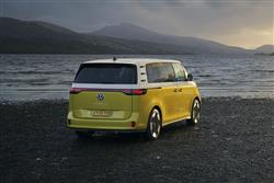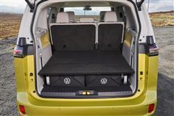 How did Volkswagen manage to make an MPV this appealing? The result is anything but dull to look at, somehow retro, without looking it. It's as much the proportions as the overall style that reflect the classic 'VW Bus' look - at 4.7-metres long in this early model's short wheelbase form, the Buzz is over half a metre longer than the old Type 2 - but there are neat little design touches that help along the way with the retro vibe: a blacked-out glasshouse that creates a 'floating'-style roof; huge aerodynamic flat-faced 19-inch, 20-inch or 21-inch wheels; super-short overhangs; and three gloss black D-pillar streaks, a nod to the rear air vents found on those old classic 'Bus' models. Plus, for a large MPV, there's an outstandingly sleek drag coefficient of just 0.29Cd. And many models were ordered with a Multivan-style two-tone paint finish. It's all distinctly un-van-like, though if you do actually want a van, there's always the ID.Buzz Cargo version. Overall, we think you'll like what you'll find inside up front. You sit much higher than you would in a comparably-priced mid-sized SUV (above all those batteries) and a large, almost upright windscreen allows for lots of light, as does the enormous expanse of glass down each side. Slim A-Pillars and huge front quarter-lights all contribute too. There's a completely open lower floor, so you could walk across and get out of the passenger side, should you feel so inclined. And you can also walk back between the front seats - or at least you could if you removed the central so-called 'Buzz Box', a multi-storage package that easily detaches from its floor clips when you don't need it. The bright, friendly decor of 'Style' spec isn't particularly practical, but helps with the general feeling of spaciousness. And there's a slim illuminating 'ID.Light' panel at the base of the windscreen that'll be a talking point at night. The 'Digital Cockpit' instrument display is the usual compact VW ID screen of just 5.3-inches in size, but it works well; gears are selected via a steering wheel stalk. The much-criticised centre infotainment screen (offered in this early model in either 10 or 12-inch sizes) actually works OK; but the volume and temperature sliders beneath it are awful, as are the switches on the awkward touch-sensitive panel by your right knee. Still the important stuff's properly covered; the seats are excellent and there's a huge amount of cabin storage. Let's consider the rear, accessed, as you'd expect in an MPV, by sliding side doors which as an option, could be electrically-powered. You might want a Buzz fitted with that option because they take quite a slam to manually shut and you don't want have to keep worrying whether the kids have done it properly. Once you're comfortable inside, you wouldn't think this car was based on the same MEB platform as Volkswagen's relatively compact ID.4: there's no lack of occupant space in the back - as you'd hope given the lengthy 2,989mm wheelbase length. What's a little more disappointing is the use of a conventional bench, rather than the three individual seats you'd normally get in a purpose-designed MPV. Still, at least (unlike in most fully electric Crossover models) this bench slides (by up to 150mm), plus the backrest also reclines by quite a long way. This early 2022-2024-era Buzz could only be had in short wheelbase five-seat two-row form. You'll need plenty of rearward space to operate the vast tailgate (tight spaces in multi-storey car parks will be an issue). And with the base variant, original buyers had to pay extra to get it power-operated (which is virtually essential as it's quite heavy). It rises to reveal a low loading sill and a potentially enormous 1,121-litre space, more than twice what you'd get in a comparably priced electric SUV. On the plusher 'Style'-spec model, much of the lower part of that space is taken up with a 'Multi-flex' board, but you can remove that if you wish (and have somewhere to store it). Most of the time of course, you'll leave it in place, which would be convenient because with this suspended floor fitted, the nearer part can be angled up so you can slide the canvas storage trays in and out, one for the safety kit and luggage nets, the other for the charging leads. Should you want to use your ID.Buzz like a removal van, the rear bench backrest can be of course be folded forward. If you do fold the rear bench flat and remove the 'Multi-flex' board, then up to 2,205-litres of space would be available.