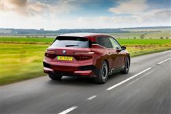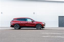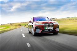 By and large, BMW doesn't do 'beautiful', but it is very much a specialist in 'striking' - and this iX is certainly that. It's certainly big, just under 5-metres long, around 2-metres wide and a fraction under 1.7-metres high - about the same size, in other words, as the company's X5, which BMW claims shares nothing with this car. Like the old i3, there are carbonfibre cores for the windscreen pillars and cant rails - and aluminium honeycomb door sills too, plus in this case carbonfibre-reinforced plastic for the roof, all of it intended to allow this car to tip the scales somewhere near the class norm point of around 2.2-tonnes. Inevitably though, the iX gets nowhere near that benchmark; think nearly 2.6-tonnes, 650kgs of which is accounted for by the lithium-ion battery pack. One day, historians will be shocked that EVs were ever like this. Shock is exactly what unsuspecting fast lane dawdlers will feel when they suddenly find this car's huge kidney grille bearing down upon them at warp speed. And in profile? Well the shape may appear a touch ungainly but it's undeniably aerodynamic, with a sleek drag co-efficient of just 0.25Cd. There's a wraparound look to the tailgate, with thin horizontal rear LED lamps stretching towards the central BMW roundel in an unnecessary attempt to emphasise this car's prodigious width. According to its maker, this car was designed 'from the inside out', the focus being on what the Bavarian brand calls its 'Lighthouse' interior. It certainly light, especially with the optional dimmable Sky Lounge panoramic roof fitted. There's so much to take in. The curious hexagon-shaped steering wheel is difficult to ignore; your main point of control is a rocker switch for gear selection; and even in a screen-dominated era, the 'Live Cockpit Professional' set-up's gently curving slither-like joined 'Curved Display' is unusual, apparently floating above the angular dash and incorporating a 12.3-inch instrument set-up and a 14.9-inch central infotainment screen. Strange trimming combinations assault the eyes, there's a button rather than a handle to open the door and you sit almost Range Rover-high, though here of course the raised floor is there for quite a different reason, the unusual quilted leather seats with their plant-based upholstery and integral head restraints set upon it. The two-part centre console's a bit different, designed, BMW says, in the style of 'a high quality piece of furniture' and free-standing, so there's a lovely open footwell right across the front of the car. Despite the fact that there's over 3 metres between the axles in an iX, BMW elected not to make this a seven-seater, so if you're shopping for a car of this sort from this era, you'll need to choose a Tesla Model X in this class if that's what you need. Still, that decision ought to benefit back seat room and sure enough, it feels properly spacious in the back, aided by the rear quarterlight windows and the kind of completely flat floor that you'd have to do without in rival Porsche Taycan or Audi e-tron GT models, where the centre transmission tunnel, banished here, is excessively high. Because the floor isn't inset with little so-called 'foot garages' - the insets into the lower EV floorplan that you'd get with the rival VW Group luxury EVs just mentioned - your feet are positioned a little higher, but there's plenty of knee space and, unlike with some rivals, original owners of this early model didn't have to pay extra for rear seat climate controls, which sit beneath the twin central vents. Given nearly 5-metres of body length, you'd hope for plenty of luggage capacity here. Actually, the powered tailgate with its two-piece parcel shelf rises to reveal a 500-litre space: not bad, might be your initial thought, until you check rival stats and realise that this is pretty much the same as you'd get from a Jaguar I-PACE or a Mercedes EQC from this era - and they're both significantly smaller SUVs. If you need more space, then activating the cargo sidewall catches flattens the main part of the rear bench - there are also little buttons just inside the rear doors that do the same thing. And that frees up 1,750-litres of space.