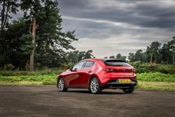 Mazda has put a great deal of effort in developing the sharp driving dynamics that have always characterised this model line, though a relatively porky kerb weight - 1,439kgs even in the base petrol version, doesn't help here, nor does it really fit with the whole 'Skyactiv' 'less-is-more' ethos. Overall though, we still think the Mazda3 in any form is one of the best handling family hatch sector cars you could choose. We'd take it over a Ford Focus; it's that good. And it has the slickest manual gearbox of any car of this kind you could choose. Automatic transmission is optional, but for goodness sake try the stick shifter before you stump up for a self-shifter. Mazda is offering a choice of two petrol engines. Most sales will be based around the 140PS 2.5-litre e-SKYACTIV G petrol unit (a mild hybrid) that has now replaced the previous 122PS 2.0-litre e-SKACTIV G unit (also a mild hybrid). Torque with this 2.5-litre powerplant is up from 213Nm to 238Nm, so performance should feel more eager. 62mph in the manual version takes 9.5s en route to 128mph. The second option is the brand's more advanced e-SKYACTIV X Spark Controlled Compression Ignition engine, a 180PS supercharged unit which runs on petrol but uses a combination of spark ignition and compression ignition to deliver, Mazda claims, the driver appeal of a petrol unit along with the fuel efficiency and torque of a diesel. This e-SKYACTIV X powerplant is able to switch from compression ignition, which best suits day-to-day driving, to a form of spark ignition, generally when the engine is started from cold or the driver demands maximum power at high revs. The 'X' engine comes paired with four wheel drive for our market, but as you might expect, the cost of all this technology makes it a pricey choice.