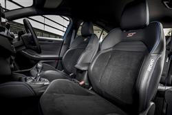 Ford now only offers one engine to Focus ST customers, but it's the one you probably wanted anyway, the 280PS 2.3-litre EcoBoost petrol unit. The 2.0-litre EcoBlue diesel option has been dropped. Buyers choose between a 6-speed manual gearbox or a quick-shifting 7-speed auto transmission with steering wheel paddleshifters. Selectable Drive Mode technology enables drivers to adjust the car's character to suit the kind of drive experience they want. The various settings tweak steering feel, throttle response and stability control thresholds - plus suspension response too, courtesy of the 'CCD' 'Continuously Controlled Damping' system that further improves the sophisticated 'SLA' multi-link suspension set-up. CCD monitors steering, braking, suspension and body inputs 500 times a second to adjust damping responses to deliver optimal ride comfort and cornering control. You also get an 'e-LSD' Electronic Limited Slip Differential. The system uses hydraulically activated clutches to limit the engine torque delivered to a wheel that has reduced traction on the road surface, and redistributes up to 100 per cent of available torque to the wheel with more traction to counteract wheel spin that can hamper acceleration through, and out of, corners. You'll want to know how fast it is; well, plenty quick enough. This car offers 420Nm of torque and uses the most free-revving Focus ST engine ever, sprinting to 62mph in less than six seconds.