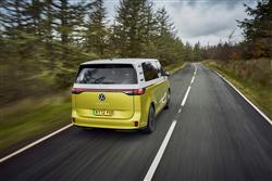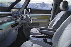 Silent running was never a feature of the old chugging rear-engined, rear-driven Volkswagen Type 2 but of course the all-electric ID. Buzz is very different. Its mainstream powerplant, a (now-uprated) 286PS electric motor borrowed from the ID.7, is still rear-mounted though, here developing far more grunt than drivers of the old 'Bus could ever dream about, 560Nm of it. Though if you regularly exercise all of that, you won't of course get anywhere near the quoted EV mileage figures. These start at 282 miles for the SWB 79kWh model; it's 290 miles for the LWB 86kWh version; and 280 miles for the 79kWh GTX LWB variant. As usual with an electric vehicle, torque feels instant and drive comes via the usual EV fixed-ratio single-speed auto gearbox, going on the standard models to the rear wheels. With the 286PS motor, 62mph from rest occupies between 7.6s and 7.9s, depending on bodyshape, en route to the very modest top speed of 99mph - at last, something Type 2 owners of the Sixties will properly recognise. If you can spend more on your Buzz, that long wheelbase GTX version has two electric motors providing four-wheel drive and a combined output of 340PS. 62mph takes just 6.4s. In any Buzz, you sit commandingly, using a drive selector stalk on the right of the steering wheel. On the move, surprisingly, at least to some degree, the Buzz can deliver both comfort and a little sportiness. It feels like the premium product its price point demands, and in fact is one of the best-riding electric cars we've driven. Body roll is kept tight through corners, and the level of refinement is excellent, not just for the MPV class, but any class. We're not so impressed by the lack of brake energy recuperation options: there just an extra 'B' gear selector function to heighten energy harvesting off-throttle. But in every other way, the ID. Buzz is a revelation to drive. There's a tight 11-metres turning circle (a metre better than the Multivan), which along with the glassy cabin should make the Buzz feel very manoevreable in town. All the usual VW drive assist features are available - Matrix headlights, 'car2x' swarm informational technology and the 'Travel Assist' semi-autonomous drive system.