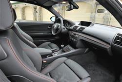 Stick with me a moment while I talk about the 1 Series M Coupe's stance. It's important. So many car manufacturers get this aspect of a sporting car wrong, but BMW have it so right with this model. Stance encompasses a number of qualities. The angle of the car's waistline, the visual relationship between the wheel and tyre and the corresponding relationship between wheels and wheel arches. Get it even slightly wrong and the design looks awkward and without dynamic tension. With a rear track that's been increased in width by 55mm and a chassis that sits properly hunkered down on its 19-inch Y-spoke alloy wheels, the 1 Series M Coupe looks power packed, like a Hanna-Barbera bottle rocket. The interior features sports seats in Boston leather with Kyalami orange stitching that offer plenty of lateral support. Customers also get an M leather steering wheel, while there's Alcantara with Kyalami orange contrast stitching on the door trim, door inserts, handbrake and gear lever gaiter and instrument binnacle cowling. The M logo is also embossed in the front of the headrests. Like other 1 Series Coupe, access to the rear seats is a bit restricted but some recompense comes in the shape of a respectable 370-litre boot. The car comes with a Dynamic Stability Control system that includes elements such as an anti-slip control function (ASC), brake assistant Dynamic Brake Control (DBC), a drive-off assistant, Cornering Brake Control (CBC), an anti-fading function and a dry brake function is also standard. There's also two-zone air-conditioning, cruise control, BMW Radio Business with MP3-capable CD player and six speakers. Options include Comfort Access, Harman Kardon Surround Sound System, Professional Navigation system with hard drive storage, Adaptive Headlights and High beam Assistant.