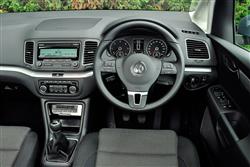 This MK3 model Sharan's extra size isn't immediately obvious at first glance, possibly because family front-end styling borrowed from Volkswagen's compact Golf and Polo models offers a feeling that it's smaller than is actually the case. A feeling certainly not supported by the tape measure. A 220mm increase in length means that it's nearly five-metres long, as well as being 92mm wider and 12mm lower than its immediate predecessor. All increases which, as you'll find from a seat inside, have been put to very good use. Especially at the very back. Entry is by sliding doors (so your kids won't re-sculpture the bodywork of adjacent cars any more as they throw themselves out into the supermarket carpark), portals that optionally can be electrically powered. Access to the third row was also made easier in this MK3 model by the Easy Entry function through which the outer seats in the second row tilt and slide forward in a single motion. Once in these rearmost chairs, kids will be delighted to find that they sit a little higher than those ahead, while their parents will discover that this is one of those unusual things: a 7-seater that seven fully-sized adults can actually fit into. Seats like these in compact MPVs and most 4x4s are usually for kids only - or very uncomplaining and agile adults unfamiliar with the offerings of Colonel Saunders. Earlier MK1 and MK2 Sharan models weren't much better either but thanks to its 75mm of extra wheelbase, this MK3 design was able to make a real step forward and the cabin's huge glass area removes the feeling of claustrophobia that you'd normally expect to find. Second row occupants, who can recline their three individual seats for greater comfort on longer journeys and slide them by up to 160mm back and forth as required, are even better looked after, with the option for parents of flip-up booster cushions for use when needed. The problem though, with all these seats in the old MK1 and MK2 Sharan models came when you didn't want them. For the really van-like carrying capacity promised by that boxy shape, you had to lug them out of the vehicle and store them in your garage - hardly ideal. Thanks to the clever EasyFold seating system in this MK3 design, it's all very different. The five rearward seats fold flat into the floor in single easy movements, instantly freeing up an enormous 2,430-litres of cargo space that can be extended still further by folding the front passenger seat flat, allowing nearly three metres of load length. With five seats in use, the boot space is as much as 1,339-litres if you make use of the detachable mesh partition that allows cargo to be stacked to the ceiling. Travel 7-up and of course, it's a total that falls substantially - to 300-litres. Wherever you're seated in this car, head, shoulder and legroom are ample but of course, the most comfortable perch is to be had behind the wheel, where ample adjustability for both seat and steering wheel means that it's easy to find the ideal driving position. As you'd expect from this brand and this pricepoint, it's a classy cabin with lots of soft-touch materials and classy switchgear.