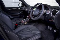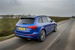 Audi has perfected its own unique and very subtle brand of design language that manages to underplay almost everything. Can you think of an extrovert-looking car in the company's mainstream product line-up? No, nor us. And the same theme continues with this MK1 model SQ5. You read the specification list and expect it to look like some sort of tarmac-grazing, testosterone-stuffed serial killer of a car that should carry an 18 certificate but in the metal, the overall effect is deceptively mild. Look closely though and all the performance cues are there, most notably emphasised by exclusive 'S' Sports suspension dictating a ride height that's sees this car running 30mm nearer to the ground than other MK1 model Q5s. The wheelarches are amply filled by large 20-inch alloys. And at the front, as well as the usual Audi 'S' model aluminium-look mirror housings, you get Xenon headlamps flanking a platinum grey single-frame radiator grille with galvanised twin struts in an aluminium finish, plus a modified bumper assembly. The rear makes a statement too, with a roof spoiler, an 'S'-specific bumper design and quadruple tailpipes. And inside? Well, like all Q5 models, this SQ5 has a spacious feel, emphasised by the way the sports seats sit you high up with a commanding view out over the less fortunate motorists you'll be shaping up to pass. Issues are few. It's not possible to position the seats so that you feel a little more sporty - a little more hunkered down in the car. And the chunky A-pillars can sometimes slightly obscure your view at junctions or roundabouts. That's about it. The cabin is of course beautifully appointed and the optional flat-bottomed sports steering wheel that many original owners specified sets it off perfectly. It's all primarily trimmed in black, but original owners who found all this a bit sombre could specify a 'lunar silver headlining' (which is more restrained than it sounds) and a variety of inset colours for the sports seats. These are electrically-adjustable, nicely bolstered and finished in soft nappa leather as standard. Some highlights? Well, we love the rubber and metal pedal set, the simple elegance of the dual-gauge instrument dial pack, the beautiful contrasts between dark and light finishes in the cabin and the S-specific touches. Features such as the S gear shift knob, plus further S badges on the door sill trims, the start button and the steering wheel. It's a cleanly styled dash too thanks to the reduction in button clutter made possible by Audi's well regarded MMI control interface. If you've got it in optional 'MMI navigation plus' form, you'll find that the number of fixed keys has been cut down to just four - Navigation, Telephone, Radio and Media. It all works effectively, but it's a system that rewards some dedicated learning time if you're to get the most from it. In the back, thanks to the long 2.81-metre wheelbase, the reclinable rear seat offers comfortable space for two adults - or three at a push, people who'll appreciate the 'Rear Bench Seat Plus' option which enables the rear bench to slide back and forth to prioritise either passenger legroom of luggage space. And talking of luggage space, well the 540-litre cargo bay (accessed via a usefully low loading lip) may not be the largest in the class but it's not far off it and is large enough to take four golf bags, which seems Audi's standard unit of volume. Weighty stuff can be taken too thanks to a 580kg payload capacity and there's also a useful under-floor compartment where you can throw wet and dirty gear or just items that you might want to keep out of sight. Plus you get a useful selection of hooks, power sockets and fastenings. Models fitted out with the optional sliding rear seat get a useful through-load system for longer items, but if you need more room than that, pulling the latches on the side wall of the luggage compartment automatically pushes forward the 60/40 split-folding rear seat to increase the capacity to 1,560-litres and offer up a maximum load length of 170cm. We also like the fact that if you give these levers another pull when the seat backs are retracted, the backrests rise up again to 45-degrees.
