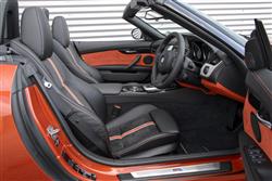 Four wheels, two seats and a big engine. It doesn't get much simpler than that. Like any classic roadster, more than half the length is given over to the engine, which is one reason why there's only space enough for a couple of passengers. As to the changes made to this revised MK2 version, well, they don't amount to very much. The headlights include white LED corona rings and a white 'eyebrow' with additional chrome detailing, while in profile, the side gill features chrome detailing and LED side repeater lights. Otherwise, things are much as they were with the original version of this MK2 model Z4, with subtle styling flourishes like the indented 'V' set into the bonnet running like a ribbon snagged on the badge. Neat detailing then - and neat packaging too. You'd certainly expect the inclusion of a two-piece electro-hydraulic metal-folding roof to have altered this Z4's appearance a good deal more than it has but there are no awkward looks, no tell-tale bulky rear end. BMW's design team could work miracles though and in return for the security of a hard top, you've to accept a couple of significant drawbacks. First, the speed of operation: the top takes around 20s to raise or 21s to lower (about twice as long as the roof on a fabric-topped Audi TT Roadster). At least you can operate it at speeds of up to 20mph though. The other issue, rather predictably, concerns bootspace. That's fine of course when the roof's up - with 310-litres on offer. When the top's retracted though, that figure falls to just 180-litres - about 25% less than you'd get in a rival Mercedes SLK. Having said that, the Z4 has the advantage of being able to boost its trunk capacity via an optional ski-flap. Thus equipped, you could carry either a couple of sets of short-ish skis or, more ambitiously, a couple of sets of golf clubs. If you find yourself a car whose original owner paid extra for the 'Comfort Access' option, you'll be able to raise the folded roof sandwich slightly to get hold of bulky stuff you might have put in the boot when the roof was up but which otherwise would become trapped there when the roof is down. Many owners will want to avoid this problem by using the 15.5-litre interior storage area behind the seats. And behind the wheel? Well, settle comfortably into the low-slung seat and it all feels just right, your eyes pretty much on a level with the long vented bonnet in front, tempting you to lift the seat right up to try and see over it. The snug wrap-around dash is lovely and there are some lovely unique-to-Z4 touches like the clustered climate control dials. As you'd expect for the premium money being asked, everything is beautifully built from the highest quality materials. Plus the extra head, shoulder and elbow room that have been built into this MK2 model Z4 design give it an airier cabin feel than some of its competitors.