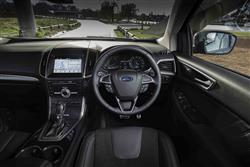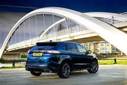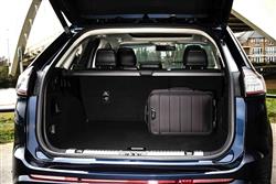 Previous large Ford 4x4s looked very much what they were: SUVs primarily designed for American and Far Eastern markets. This Edge model is a bit different from that, large and imposing but with far more of the kind of European feel needed to take on established rivals this side of the Atlantic. That was further helped by underpinnings very much developed for our side of the pond. Under the skin, the Edge sits on the same 'CD4' platform that Ford uses for the other large models in its passenger car range, the Mondeo and the S-MAX and Galaxy MPVs. Take a seat inside and ahead of you through the leather-trimmed three-spoke multi-function steering wheel, there's a classy, if rather cluttered, instrument cluster that in mid and upper-range models gives you a sophisticated 10-inch TFT set-up made up of various inset multi-function displays. The two outer ones are framed by conventional speedometer and rev counter gauges, with trip computer information on the left and safety functionality depicted on the right. In the middle, you get 'Entertainment', 'Navigation' and 'Phone' options. Anything this set-up can't tell you will probably be covered by the feature that on all models dominates the centre of the dash, the 8-inch SYNC 3 colour touchscreen, there to play its part in reducing button clutter and giving the cabin a cleaner, smarter feel. In the back, as at the front, the doors open wide to make access easy and once you're inside, you'll find massively more space than is provided by mid-sized SUV models at this price point (think RAV4 or CR-V). No other SUV priced remotely close to this one can comfortably seat three adults across the back seat, but such a feat is easily managed by this Ford, aided by a notably low-set central transmission tunnel. To some extent, the reason why it's so spacious in the back is that surprisingly, Ford opted not to add in a third fold-out seating row in the boot. Where the five seat-only approach should pay off is when it comes to boot space, so let's have a look at that. Avoid entry-level trim and you get a power-operated tailgate that can be activated merely by waving your foot beneath the bumper if you happen to be approaching the car laden down with bags. Once it's raised, there is indeed a quite enormous boot. Even if you only fill the space up to the window line, there's room for 602-litres of cargo. Pack it to the roof and you can fit in 800-litres of luggage.