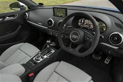 If you've got it, you shouldn't need to shout about it - or so Audi believes. Hence the subtlety of the changes made to Sportback and Saloon versions of this RS 3 in 2017 to differentiate them from their equally low-key S3 stablemates. As before, there was a choice of Sportback hatch or saloon body shapes. Either way, the major points of differentiation with this post-2016-era model lie at the front end where the three-dimensional black honeycomb grille lacks the bright aluminium cross-bars that feature on other A3 variants from this era and gets 'quattro' lettering along its lower edge. Underneath, a silver blade flows just above the lower splitter and turns up at either end into more purposeful-looking lower corner air intakes. Behind the wheel, it's all in the details. The flat-bottomed leather and alcantara-trimmed RS sport leather steering wheel with its contrast stitching is of course bespoke. So are the stainless steel pedals, the RS gear lever and the illuminated RS door sill trims. We really like the seats. They came in nappa leather-trimmed sports form as standard, but we'd want to find a car whose original owner had paid the extra for the brilliant winged, diamond-quilted Super Sports seats. They're anatomically-shaped and perfectly position you to view another standard cockpit highlight, the all-digital Audi 'Virtual Cockpit'. In the back, a six-footer can sit behind an equally lanky driver but it's a fairly snug fit and, as you'd expect from this class of car, three across the back only really works if the people concerned are of school-going age. The boot is 335-litres in size if you go for the Sportback variant. That's 5-litres less than you'd get in an equivalent S3 Sportback. Opting for the Saloon body style means you have to compromise quite a bit on cargo volume. Even though the trunk area is 170mm longer than that of the Sportback, the total capacity figure with that variant falls to 315-litres (down from 390-litres in a four-door S3).