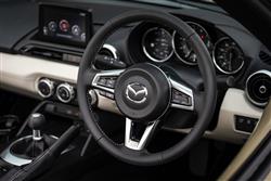 Shorter, lower and wider than its MK3 predecessor, this ND-series MK4 design was the most compact MX-5 ever made. For us, it was also the best-looking example of the breed so far, with perfectly balanced proportions and beautiful detailing that conveys motion, even at a standstill. The emotive shape has more aggression in 'ND'-series form - and a greater sense of energy too - but you'd always recognise it as an MX-5, the design still true to the classic roadster principles of a long bonnet, a rear-set cabin and a short tail. An alternative RF body style with a folding metal roof was also available. Behind the wheel, the challenge was to keep the MX-5's traditional ergonomic simplicity but match it to modern levels of quality, equipment, refinement and comfort. Does it all work? Broadly yes, though folk over-familiar with the offerings of Colonel Sanders will find that the compact dimensions take a bit of getting used to as they adjust to the close proximity of the centre console, the door trim and the sides of the narrow footwell. Mazda claimed there was more kneeroom with this MK4 model - plus there's a bit of extra headroom when the roof's up too - but despite that, larger folk might still like to consider their own dietary plans and all will find the pedal box particularly tight, so much so that, rather annoyingly, it doesn't provide anywhere for your clutch foot to rest on longer journeys. This irritation apart though, there's not much to criticise here, provided you can fit in in the first place. You quickly get the whole Mazda 'Jinba Ittai' 'driver-and-car-as-one' thing - the way the driving position has been created to make you feel a part of this MX-5. We also like the flourishes of aluminium used on the air vents and door handles - and the way that the exterior body colour flows elegantly over the door on plusher models like this one. Move out back and on the face of things, trunk capacity looks to have been a casualty of Mazda's move to down-size this car, having fallen by 20-litres to just 130-litres in this MK4 model. The Japanese designers though, beg to differ, claiming that to compensate, this area has been redesigned for greater usability.